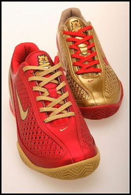 这两双网球鞋分别为一金,一红。属于郑洁的鞋子后面印有金色的“郑”和无色的“晏”,同样,属于晏紫的鞋子后面印有金色的“晏”和无色的“郑”,表现出这两位选手不仅在赛场上配合默契……
